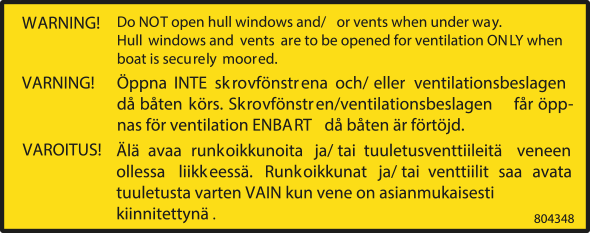 Étiquette d'avertissement pour la fenêtre de la coque. |