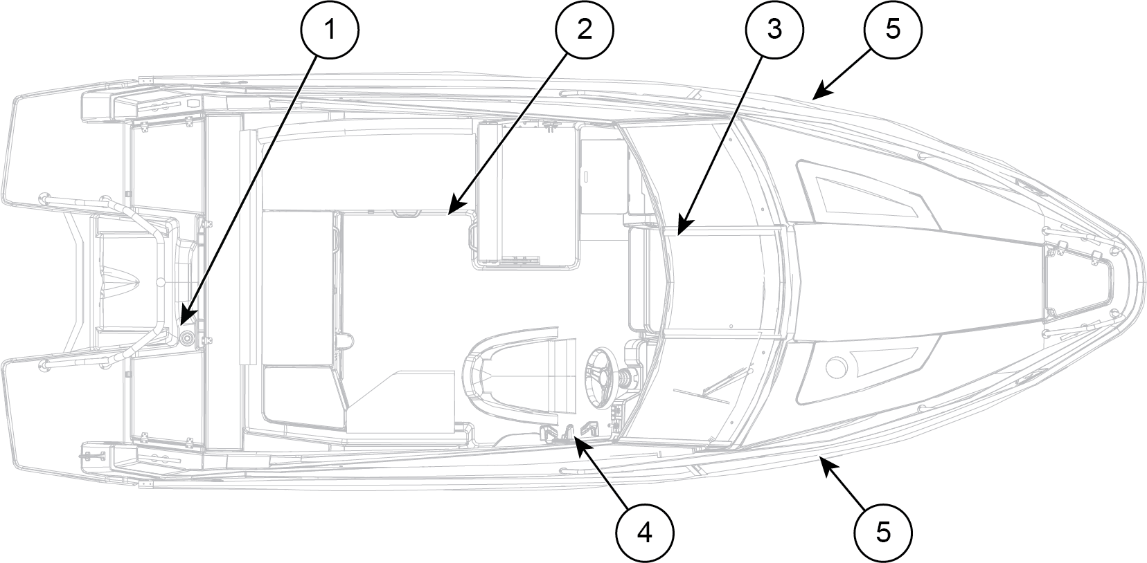 Les mêmes emplacements s'appliquent au Yamarin 63 BR, à l'exception du point 5, qui n'est disponible que dans le Yamarin 63 DC.