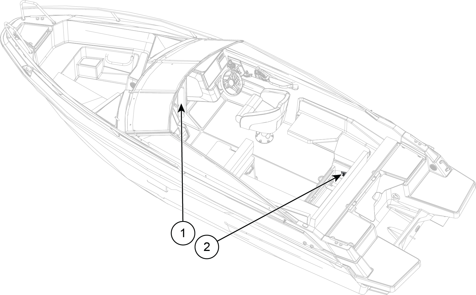 Figure 1. Yamarin 63 DC - Emplacement des panneaux de fusibles