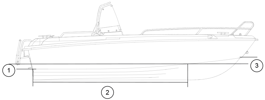 | 1 | At stern: directly up from chine | 80 mm (3.1") |