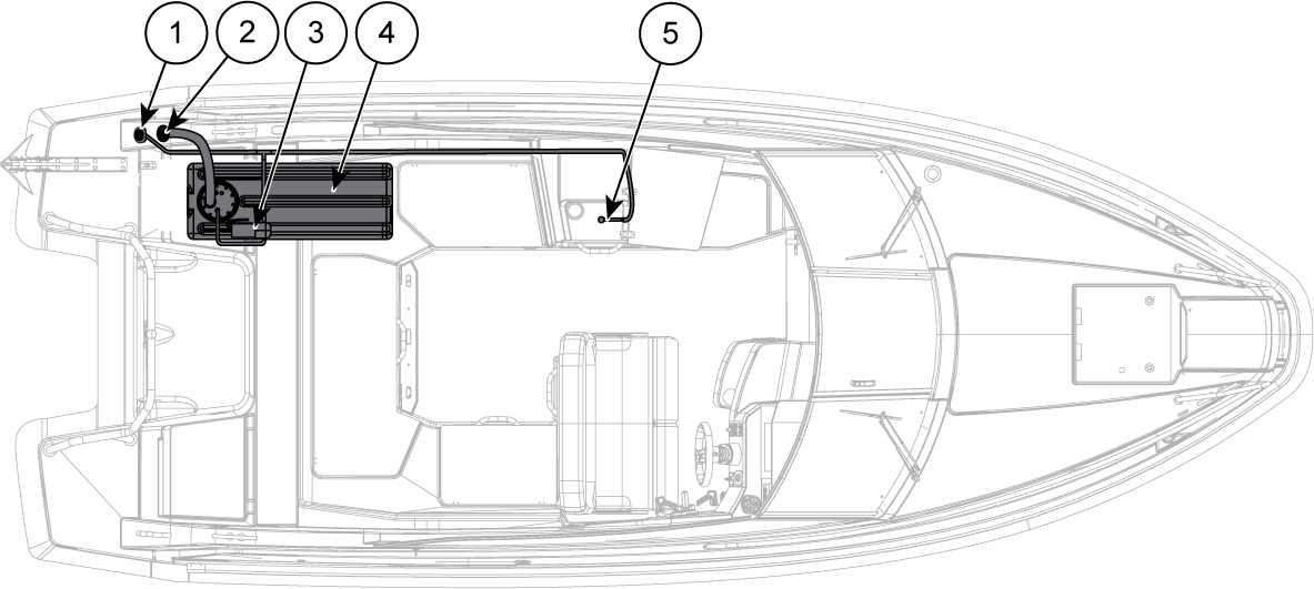 1 | Douche de pont | 4 | Réservoir d'eau |