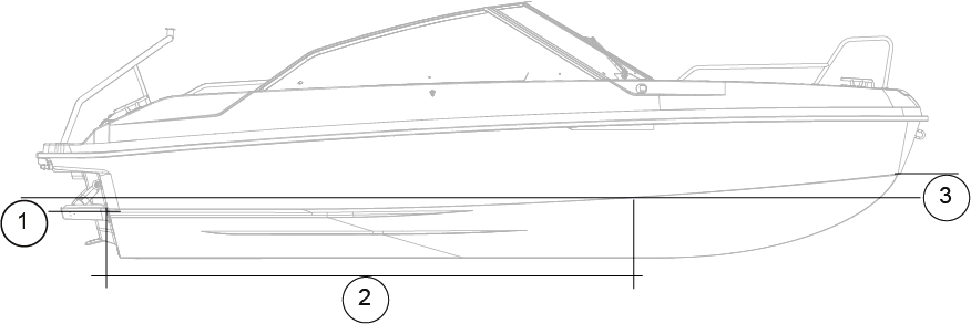 | 2 | Dans la ligne du bouchain : de la poupe | 3100 mm (122") | 2200 mm (86,6") |