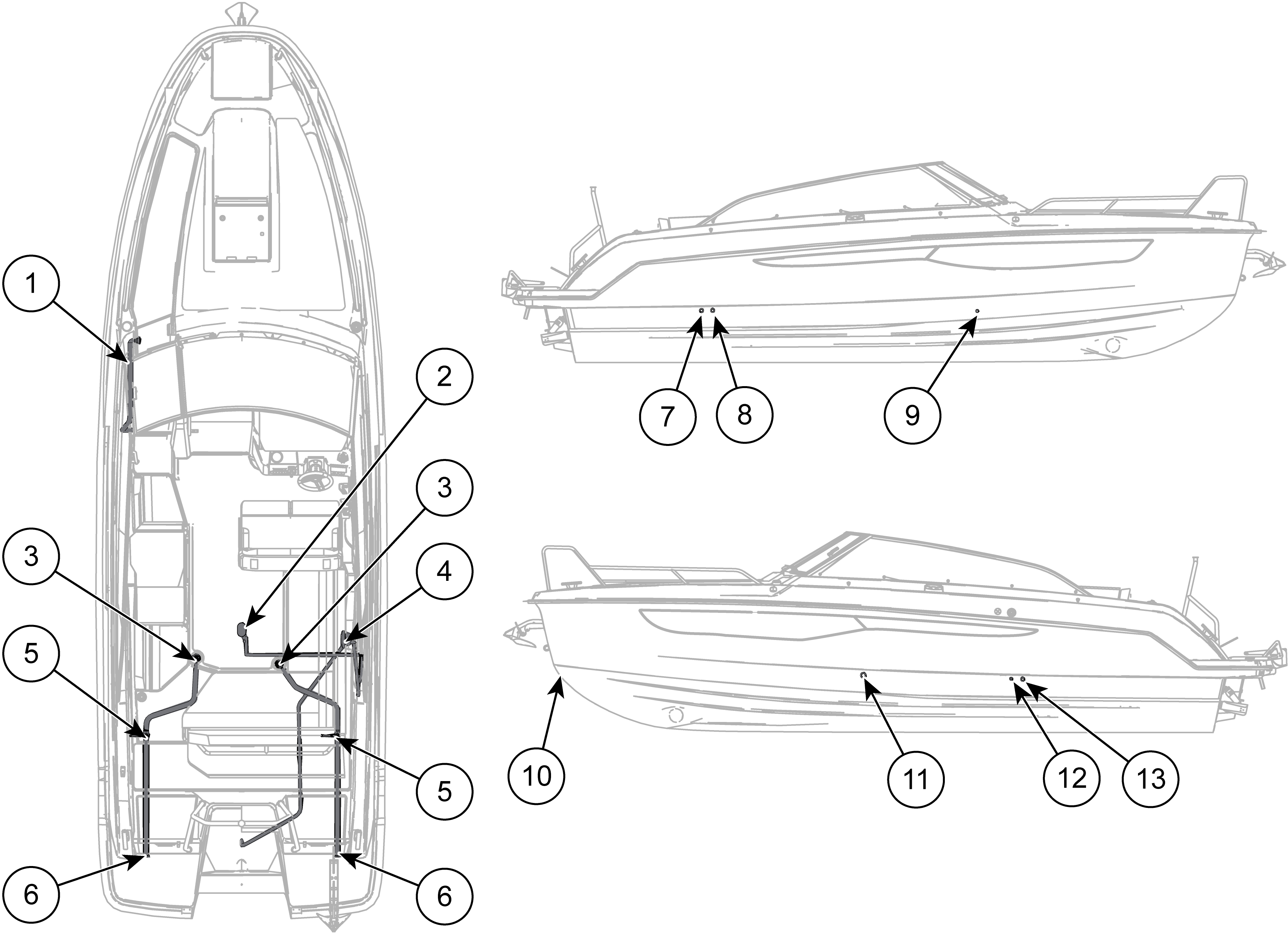 Vidange du pont avant | 8 | Pompe électrique de cale à travers le raccord |