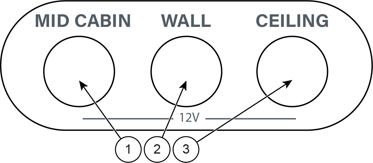 1 | Interrupteur d'éclairage de la cabine centrale | 3 | Interrupteur du plafonnier de la cabine avant |